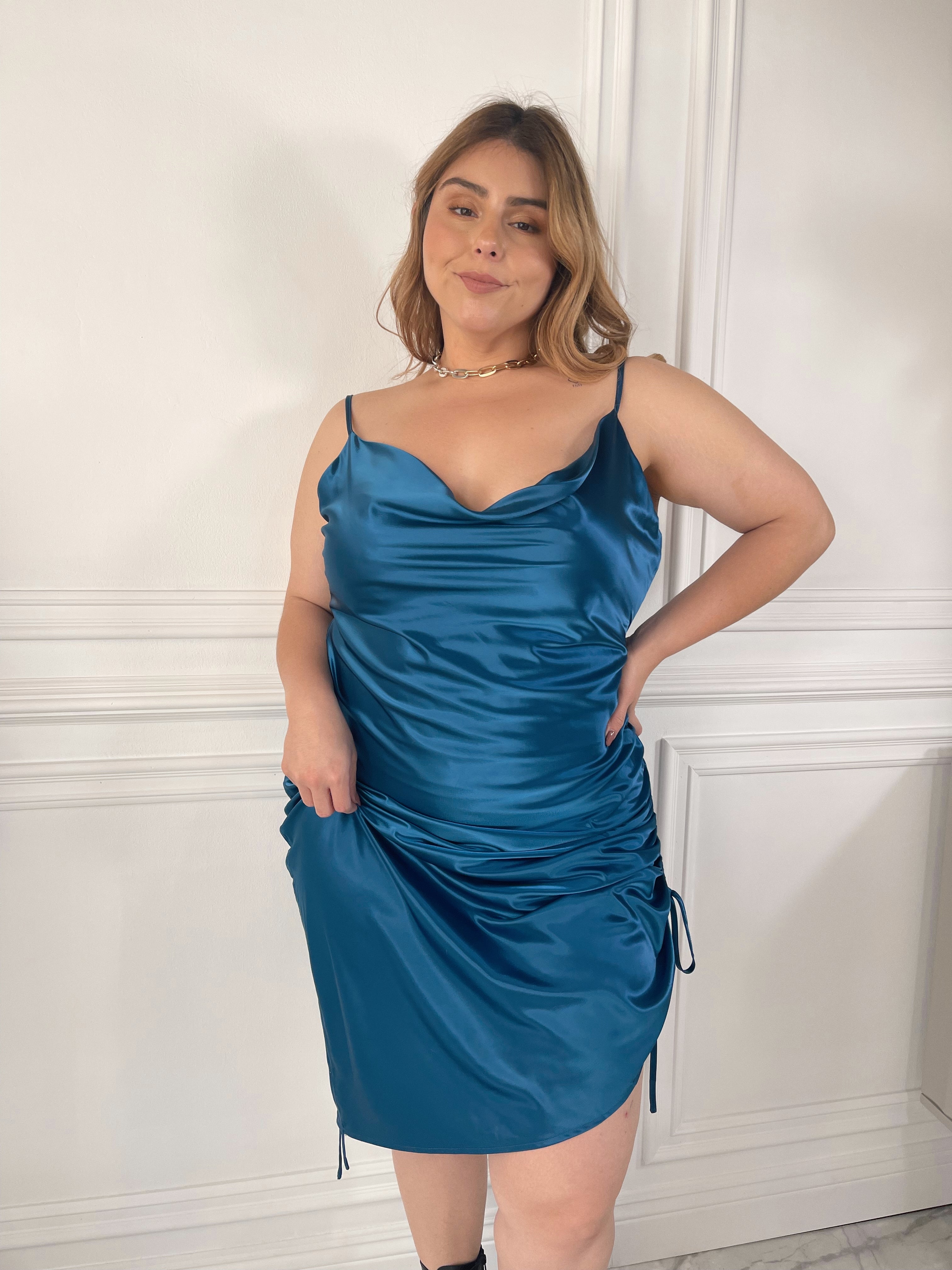 The AFTER PARTY dress features adjustable lengths and a gorgeous satin feel. Adjustable straps and a cowl neckline, this body con dress is perfect for any event. Style it with a tee under and sneakers or throw on your fav heels for a night out!