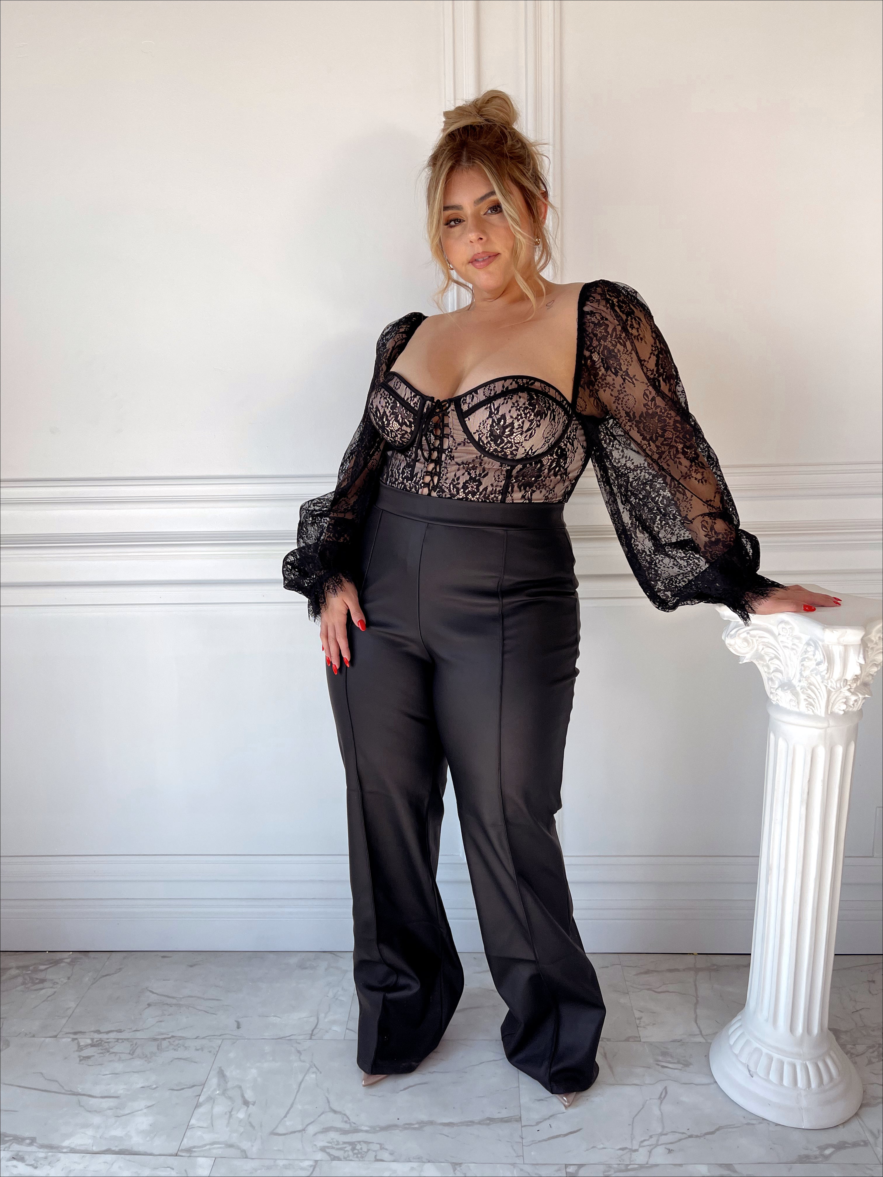 Meet CHLOE, the perfect staple for Fall. These high waisted faux leather pants feature a wide leg design, extra long, zipper closure and a soft matte finish. Pair with your fav graphic tee and converse or dress them up with a Lace top and heels. True to size, offers stretch.