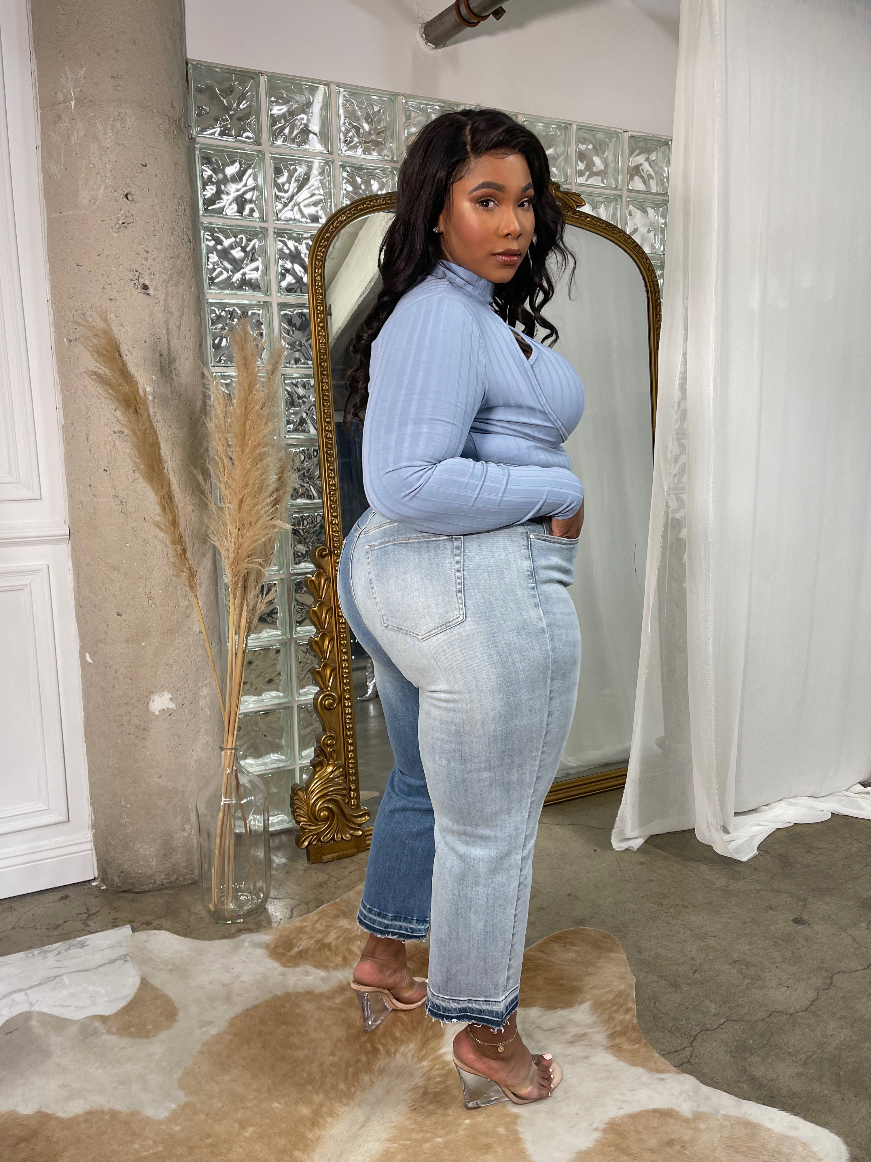 The all new KAYA is making a statement with the two tone detail. Features a cross over band, very stretchy and thick denim, frayed at the hem and a high waisted fit. True to size, pair them with a band tee and converse or a crop top and heels for date night!