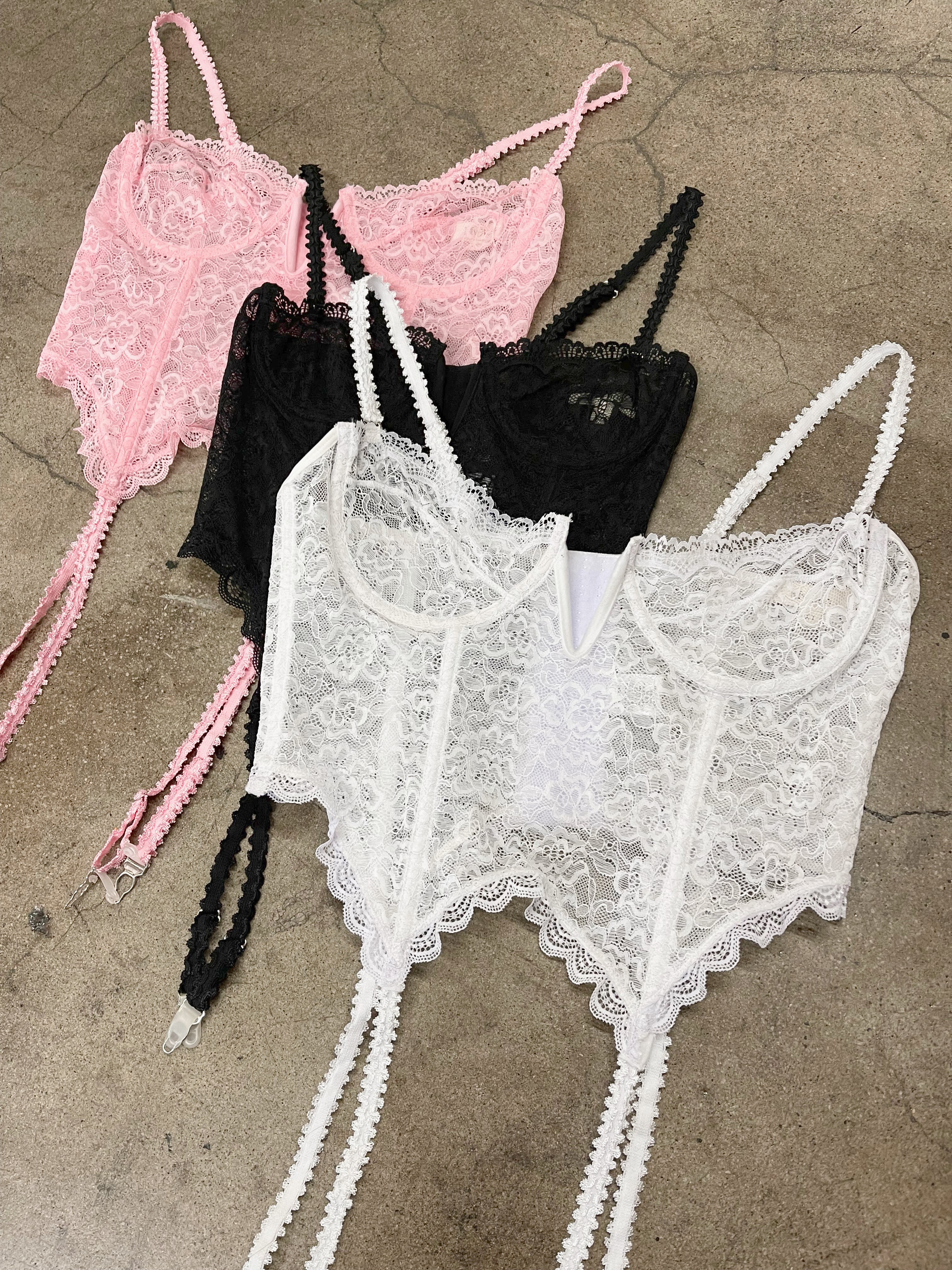 The VIVI is a delicate lace bustier that features a demi cup fit and garter straps. Adjustable and removable straps, this top is very lux. Wear it under a dress shirt for the perfect peek a boo. Very stretchy, mild boning throughout and hook eye closure in the back.