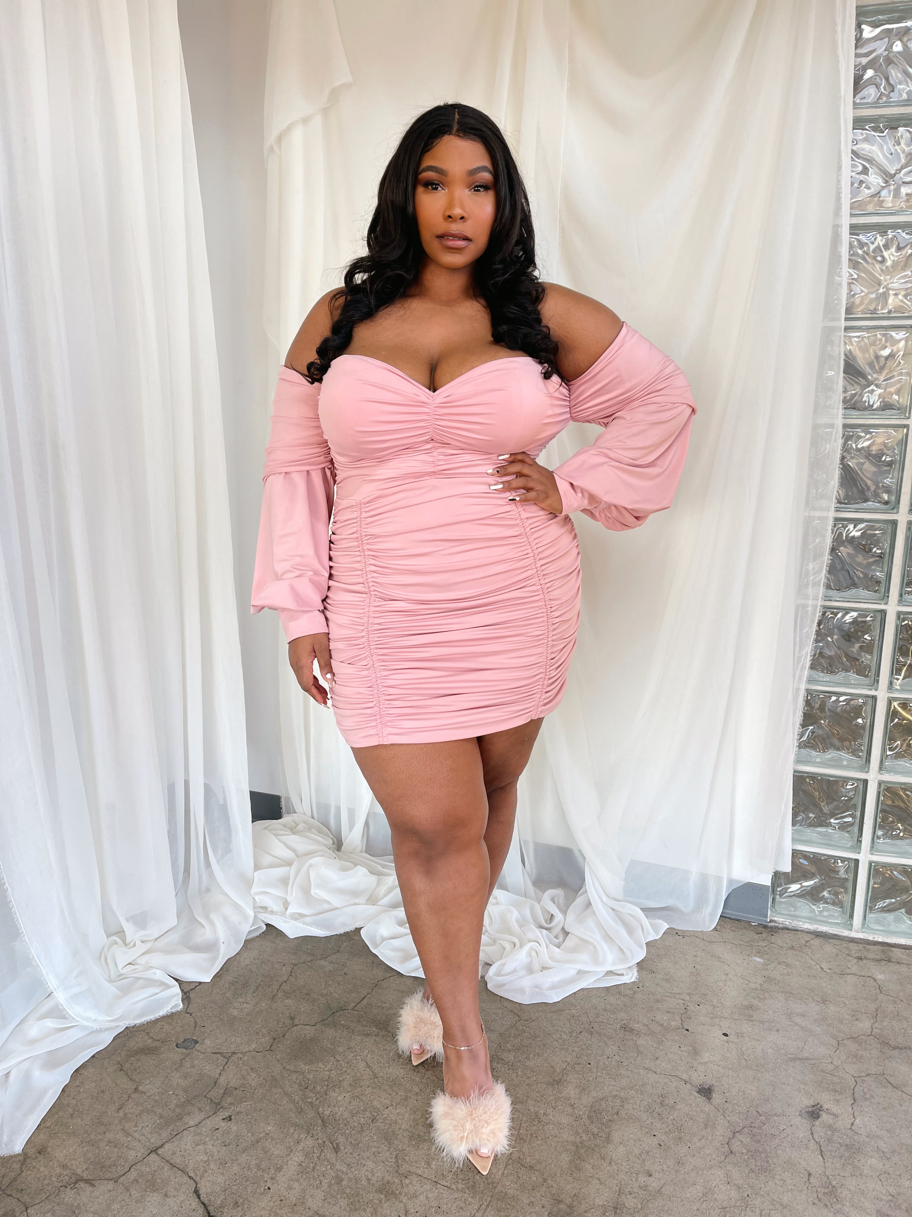 Flattering mini dresses are always a MUST. Features a bardot off shoulder style neckline, dramatic yet elegant balloon sleeves and fitted at the wrist with buttoned cuffs making it perfect for any occasion. The overall ruching and stretch will flatter your figure. Pair with clear heels, this dress will have them staring.