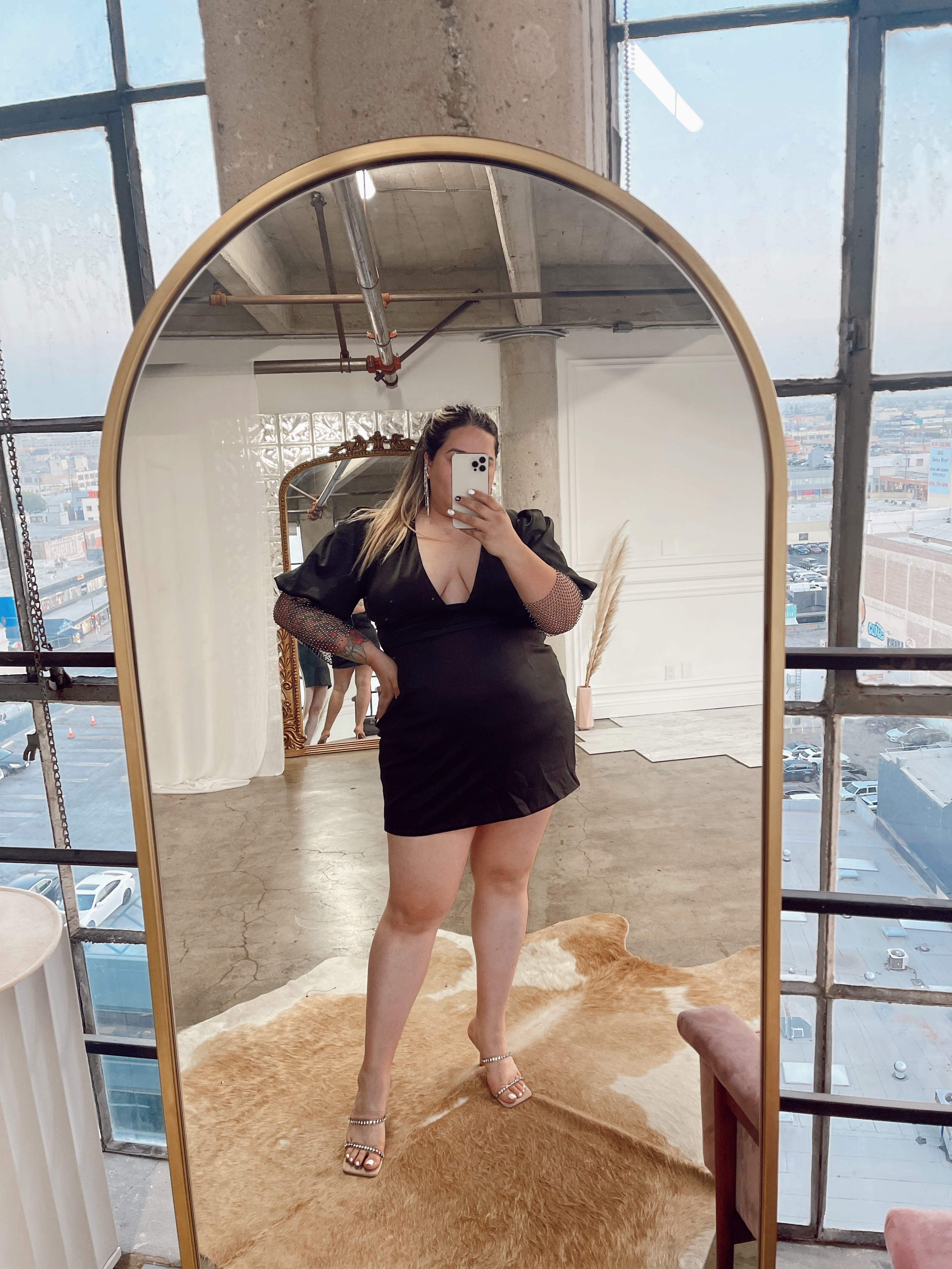NIGHT OUT Black Rhinestone Sleeve Dress