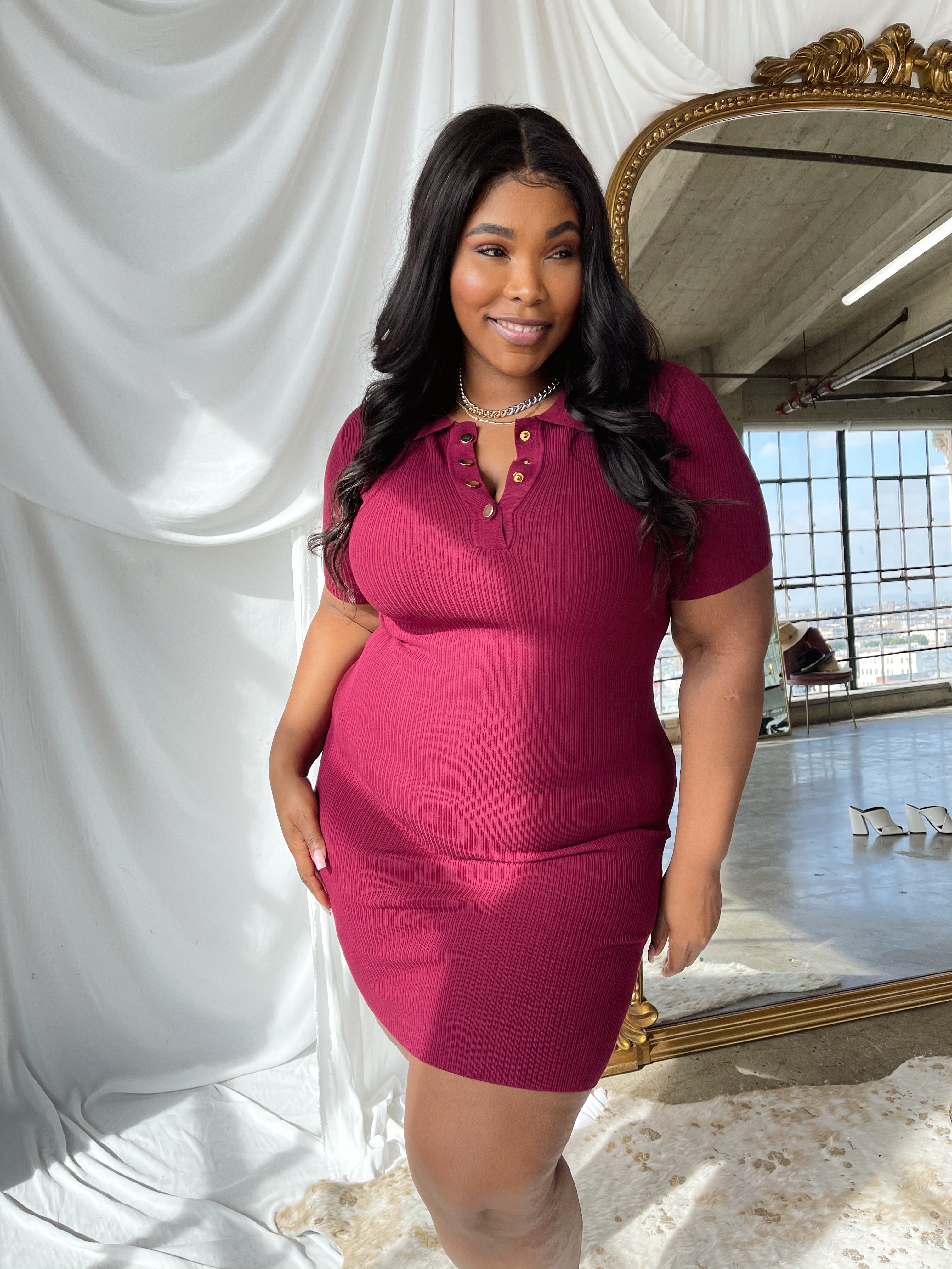 The DANI polo mini dress is the perfect off-duty throw on and go fit. It’s soft ribbed fabric is very stretchy and form fitting. Features gold closure buttons, this dress is perfect for looking trendy on the go. Style it with your fav sneakers for look we’re crushing on.