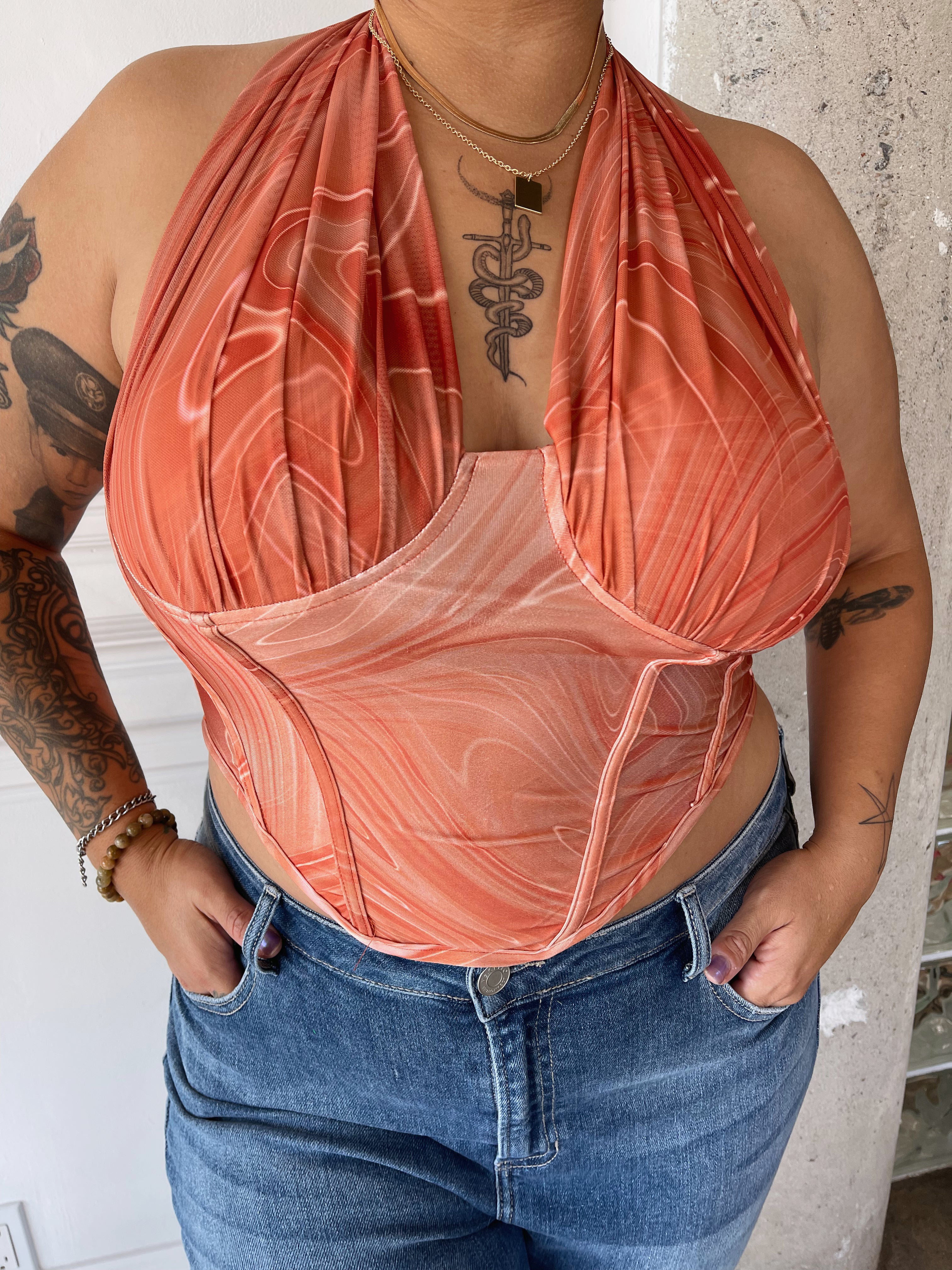 MARLEY Mesh Swirl Halter Top