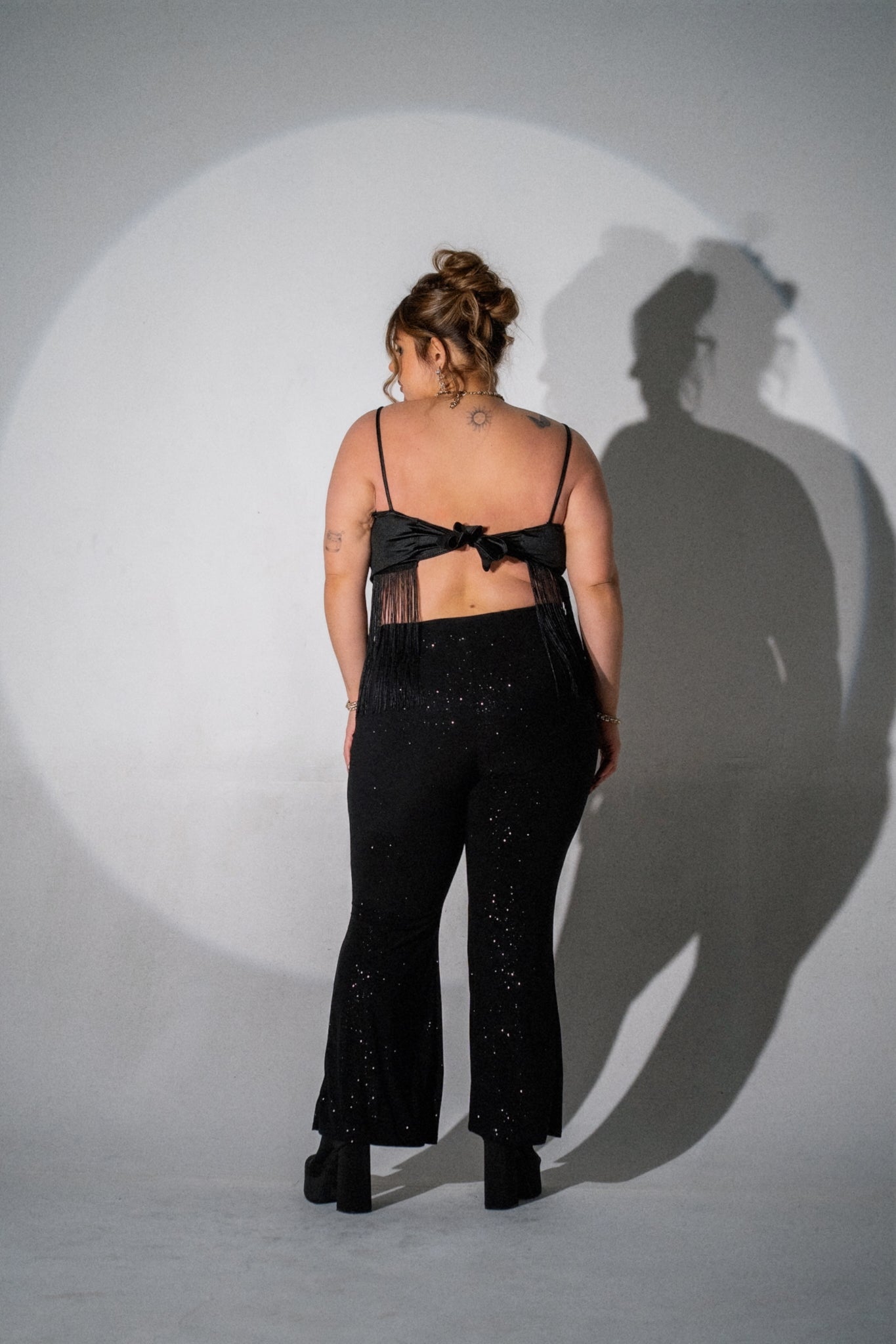 These SPADE Flare Pants deliver stretch, sparkle, and style. The flared silhouette pairs perfectly with subtle mesh details and just enough glitter to shine. Comfy enough to move in, fun enough to stand out.
